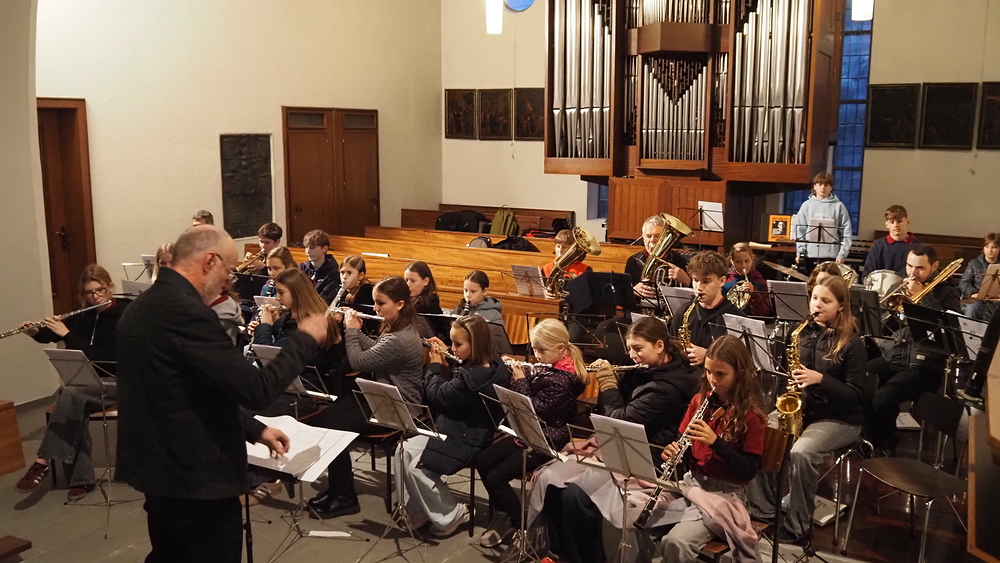 Beim diesjährigen Martinsfest am 8. November durften die Kinder mit ihren leuchtenden Laternen in die dunkle Kirche einziehen. Musikalisch begleitet von der Röthner Jungmusik feierten Vikar Willi und Gemeindeleiter Michael das Martinsfest.