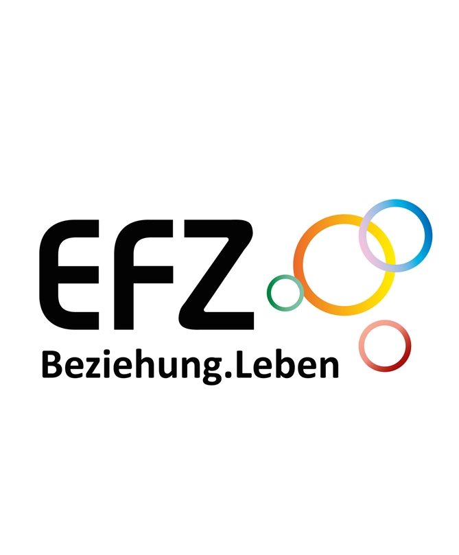Die Kreise im EFZ-Logos erinnern an Olympia-Kreise. Unsere Arbeit ist jedoch nicht mit Leistung verbunden - sie will Wirkung zeigen. So stehen die Kreise für Akzeptanz aller Menschen, in allen Lebenslagen und in allen Beziehungskonstellationen. Sie stehen auch für die Vielfalt unserer Zugänge, Blickwinkel und Methoden, die ein klares Ziel haben: Menschen in ihrer Beziehungsfähigkeit zu stärken.
